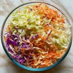 - Combine the Cabbage: In a large bowl, mix together the shredded green and red cabbage to create the base of your coleslaw.
