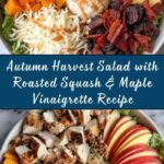 A vibrant and hearty Autumn Harvest Salad featuring roasted butternut squash, mixed greens, dried cranberries, toasted pecans, and crispy apple slices, all tossed in a sweet and tangy maple vinaigrette. Perfect for a wholesome fall meal or as a festive side dish.