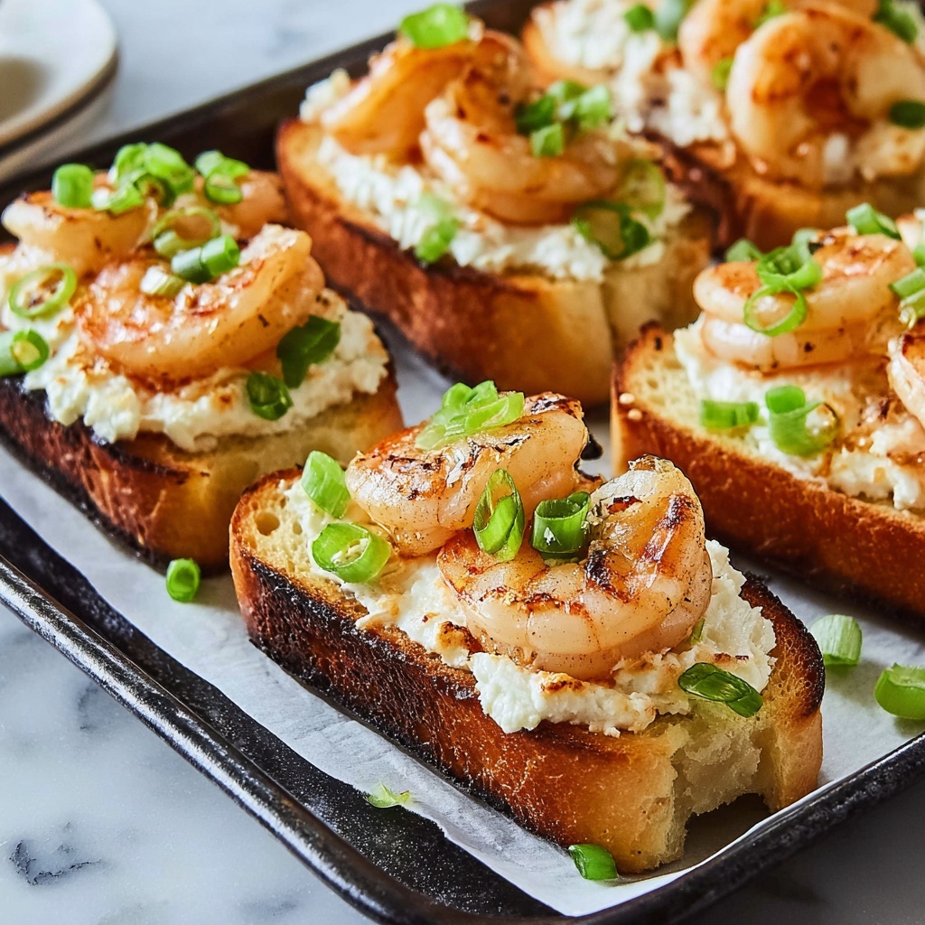 Baked Shrimp Toast is a flavorful and crispy appetizer featuring toasted French baguette slices topped with a creamy, seasoned shrimp mixture and melted cheeses. This easy-to-make recipe combines fresh shrimp, cream cheese, Cajun spices, and a blend of Parmesan and Fontina cheeses, baked to golden perfection for a savory bite-sized treat perfect for gatherings or snacks.