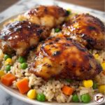 This comforting BBQ Chicken and Rice recipe combines tender chicken thighs with flavorful honey BBQ sauce, cooked together in one pan for an easy and satisfying meal. Perfect for busy weeknights, this dish blends juicy, seasoned chicken with savory rice and optional mixed vegetables, creating a wholesome, flavorful dinner in just 40 minutes.