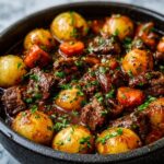 For an impressive presentation, serve the stew family-style in a rustic cast iron pot right at the table. Alternatively, use individual bowls layered with creamy mashed potatoes on the bottom and ladle the stew on top, creating a comforting shepherd’s pie-inspired dish.