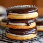 - Top Cookies with Ganache: Spoon or drizzle the chocolate ganache over the tops of the assembled sandwich cookies. Allow the ganache to set at room temperature or in the refrigerator before serving.