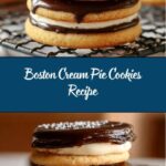 Boston Cream Pie Cookies are delightful sandwich cookies inspired by the classic Boston Cream Pie dessert. They feature a tender vanilla cookie filled with creamy vanilla pastry cream and topped with a rich chocolate ganache, creating a perfect balance of textures and flavors. These bakery-style cookies are sure to impress for any dessert occasion.
