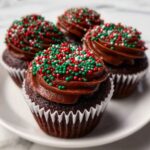 - Frost and Decorate: Once cooled, generously frost each cupcake and sprinkle with red and green sprinkles for a festive holiday touch.