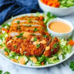 - Coat Chicken – Panko: Dredge each sauced chicken breast in the seasoned panko mixture, pressing firmly so the crumbs stick and create a crispy crust.