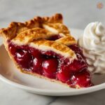 Pour the cooled cherry filling evenly into the crust. Now it’s time for the fun part—placing the second crust on top. For a traditional pie look, cover it fully and cut a few small vents to release steam. Or get creative with a lattice by weaving strips of dough for that eye-catching charm. Seal the edges by crimping them neatly.