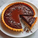 Once baked, allow the tart to cool to room temperature before refrigerating for at least 2 hours. Chilling is key to help the tart fully set and achieve that luxurious, smooth consistency. Just before serving, sprinkle sea salt and scatter chocolate shavings over the top to heighten the flavors and add a little flair to your presentation.