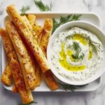 Crispy homemade pita fries paired with a refreshing and creamy tzatziki sauce make for an irresistible snack or appetizer. This quick and easy recipe uses simple Mediterranean ingredients to create a flavorful and satisfying dish perfect for sharing.