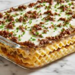 - Assemble Layers: In the prepared baking dish, layer half of the cooked egg noodles evenly, then spread half of the cream cheese mixture over the noodles, followed by half of the beef sauce. Repeat this layering process with the remaining noodles, cream cheese mixture, and meat sauce.