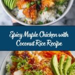 This spicy maple chicken with coconut rice is a delightful dish that balances sweet, savory, and spicy flavors. Tender chicken breasts are marinated in a zesty blend of garlic, maple syrup, soy sauce, and chili paste, then pan-seared to golden perfection and simmered in a creamy coconut sauce. Served over fragrant jasmine rice and garnished with fresh green onions, this recipe is perfect for a flavorful weeknight dinner or special occasion.