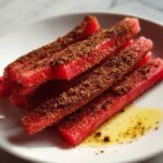 These spicy watermelon fries combine the refreshing sweetness of watermelon with a crispy, seasoned coating for a unique and flavorful snack. Perfectly baked to achieve a golden, crunchy exterior while maintaining juicy tenderness inside, these fries are an exciting twist on traditional fried snacks, suitable for adventurous eaters looking to enjoy a healthy and spicy treat.