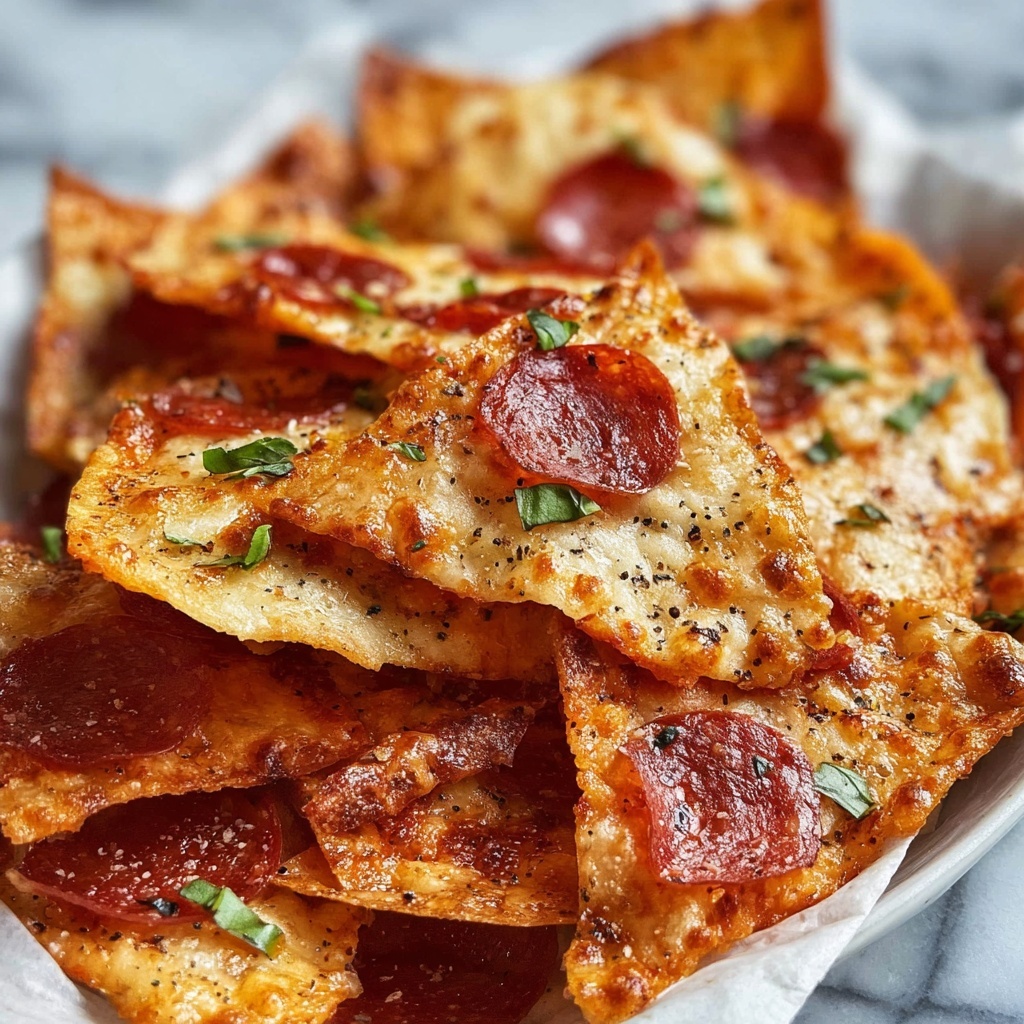 To elevate your pizza chips, sprinkle on some fresh chopped basil or a pinch of Italian seasoning right after baking. This adds a fresh herbal note that complements the richness of the cheese and pepperoni while making the presentation feel extra special.