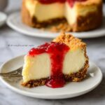 A creamy, rich Ultimate Cheesecake with a buttery graham cracker crust, tangy lemon-infused filling, and a fresh raspberry topping. Baked in a water bath for a perfectly smooth and crack-free texture, this classic dessert is ideal for special occasions and guaranteed to impress.